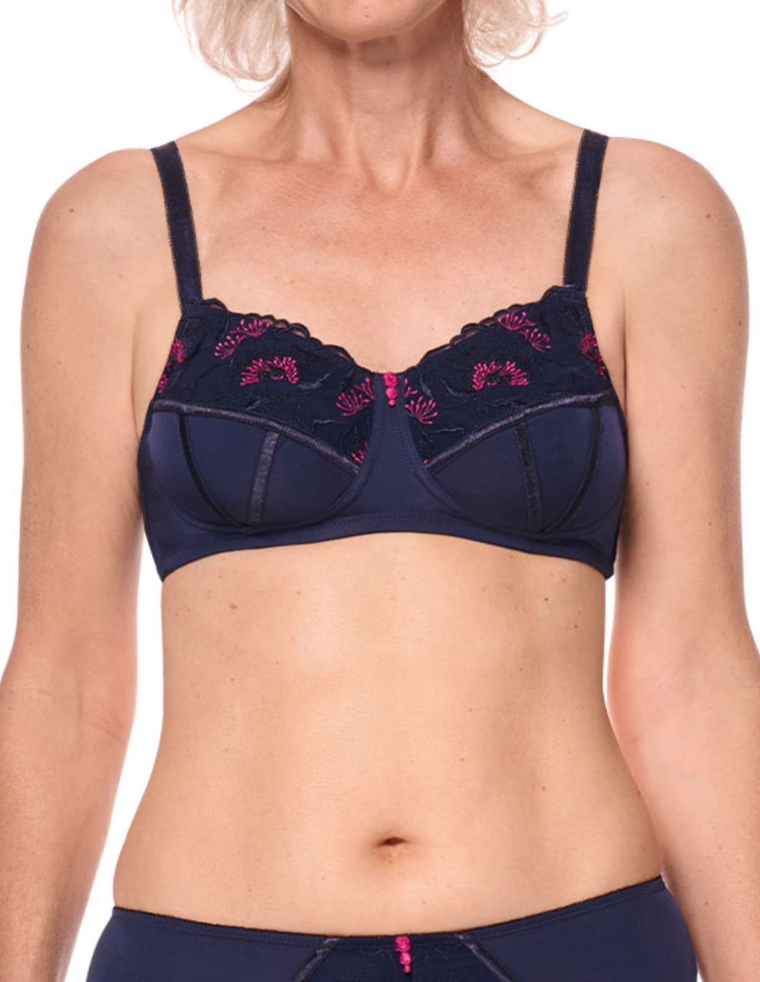 Soutien-gorge Amoena Delila sans armatures post-opératoire. Il offre un équilibre parfait entre féminité et confort pour les femmes ayant subi une mastectomie ou une intervention du sein.